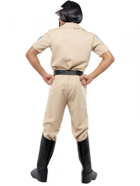Súčasťou kostýmu je košeľa, nohavice, čierné kryty na topánky a helma s šiltom.