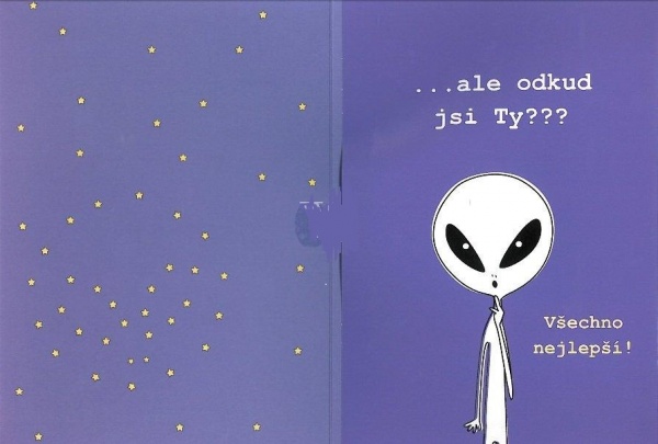 Nápis vo vnútri: ...ale odkud jsi ty??? Všechno nejlepší!