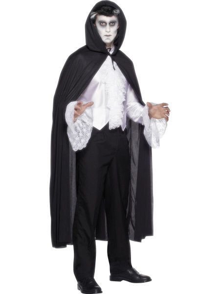 Dlhý čierny plášť s kapucňou sa hodí ako doplnok ku kostýmu upíra.