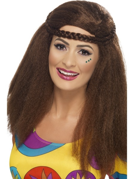 parochňa, hnedé dlhé vlasy, hippie, čelenka, karneval, 60. roky, 60's