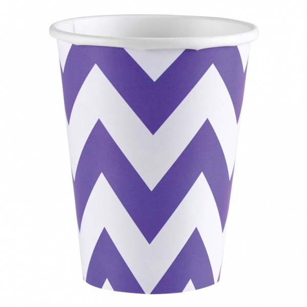 Poháriky v bielej farbe s fialovými vlnkami sú ideálnym doplnkom na akúkoľvek oslavu.