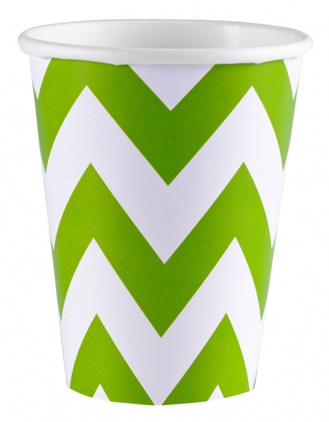 Poháriky v bielej farbe so zelenými vlnkami sú vhodné na akúkoľvek oslavu.