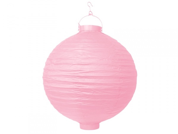 Papierový lampión so žiarovkou vo vnútri v ružovej farbe. Ideálny na výzdobu na záhradnú párty.