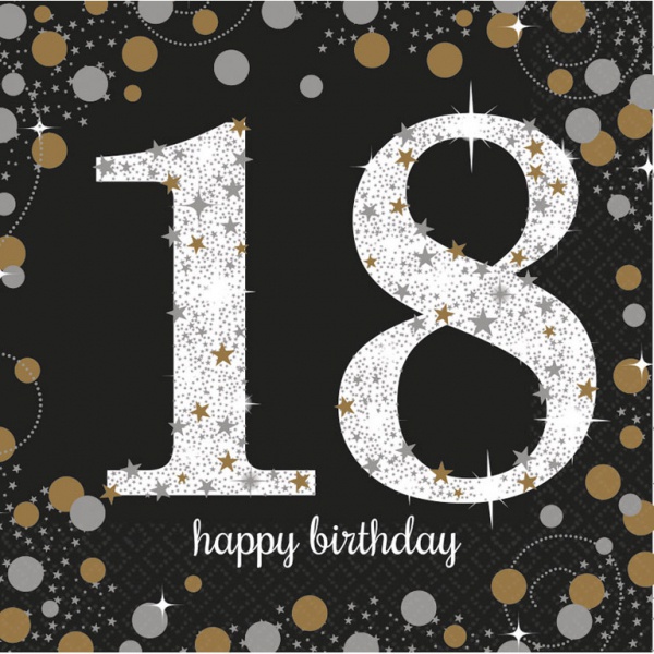 Úvod > Párty doplnky pre originálnu zábavu > Balóniky a dekorácie > Obrúsky "18" 16 ks - strieborné a zlaté