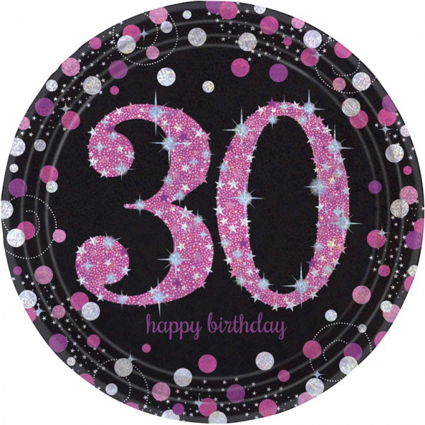 Úvod > Párty doplnky pre originálnu zábavu > Balóniky a dekorácie > Tanier "30" 8ks - ružové