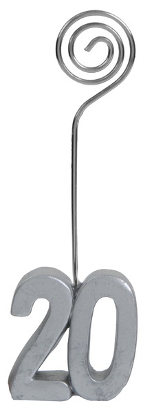Strieborný stojan v tvare čísla 20 na menovku, kartičku s obedovým menu alebo akýkoľvek iný odkaz pre oslávenca.