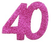 Trblietavé konfety v tvare čísla 40 v ružovej farbe.
