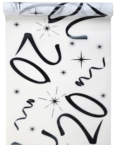 Papierový dekoratívny obrus s čiernymi motívmi a číslami 20.
