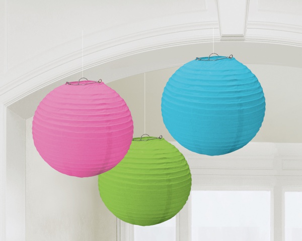 3 farebné závesné gule krásne doladia párty výzdobu. Táto dekorácia je vhodná na narodeninové oslavy alebo iné večierky. Priemer: 20,4 cm.