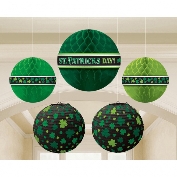 Zelené gule sú ideálnym doplnkom na oslavu írskeho sviatku. Táto dekorácia sa Vám bude hodiť na deň sv. Patrika. Balenie obsahuje 5 kusov (1 x 29 cm, 2 x 21 cm, 2 x 24 cm).