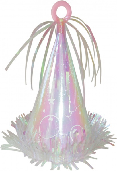 Závažie v tvare párty čiapočky so strapcami na uchytenie balónikov nafúknutých héliom na jednom mieste.